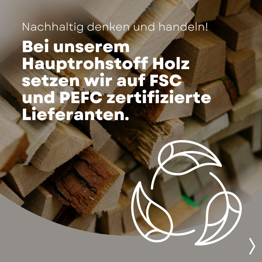 Wir setzen auf Nachhaltigkeit. Mit unserer neuen Produktionshalle prouzieren wir unabhängig eigenen Strom, beheitzen mit unseren Produktionsabfällen Werkstatt und Büro und achten auch beim Einkauf auf nachweislich ökologische Rohstoffe.