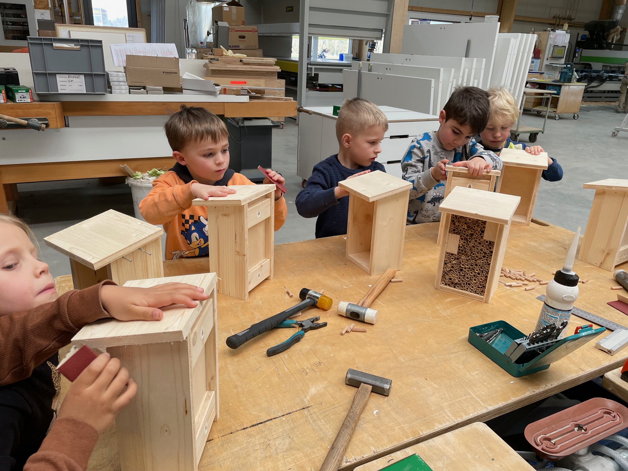 Der Höhepunkt des Besuchs war natürlich als die Kinder selbst Hand anlegen durften! Jedes Kind baute sein eigenes Insektenhotel aus Holz. Mit Hämmern Bohren und Schmirgeln hatten alle großen Spaß und waren stolz auf ihre handwerklichen Kreationen. 🐞
