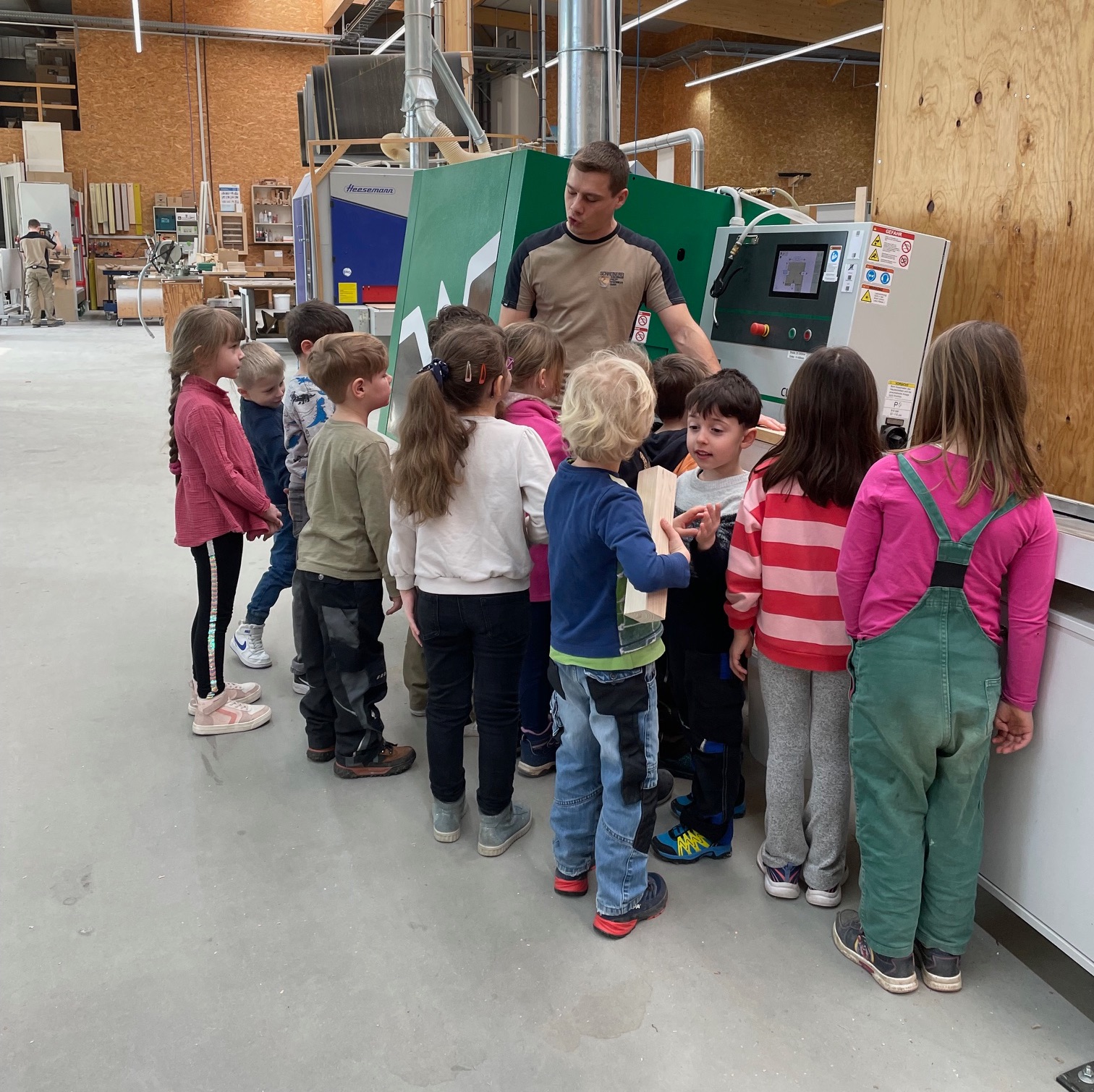 Zuerst führte Fabian Ackermann unsere kleinen Gäste durch die Ausstellung danach ging es in die Werkstatt wo die großen Maschinen gezeigt und erklärt wurden – ganz zur Freude der Kinder die begeistert waren dass fast alles ferngesteuert werden kann.