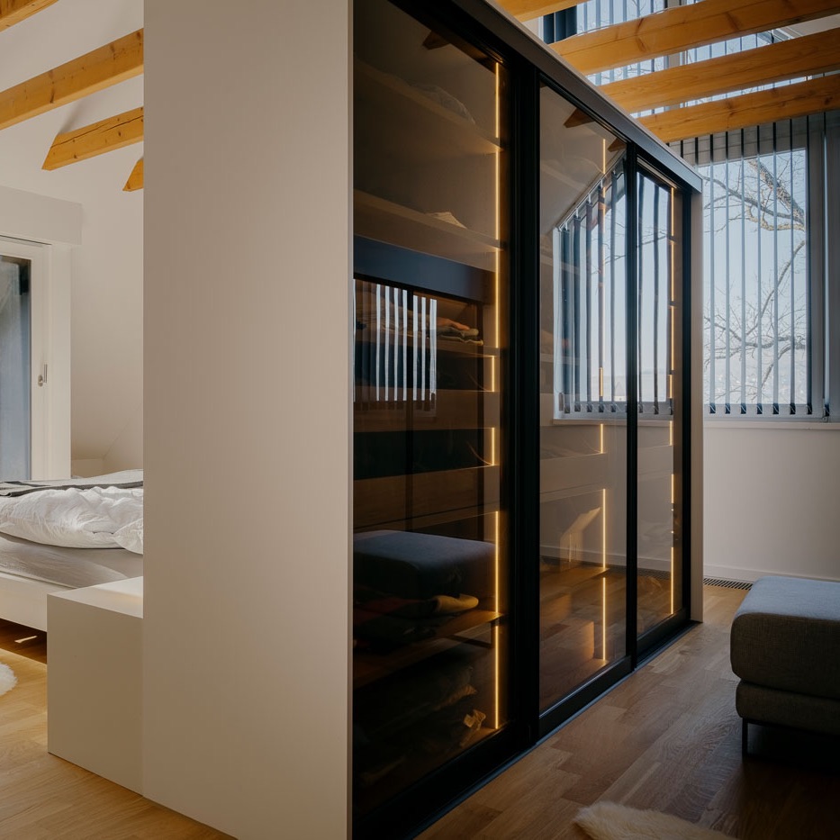 Unsere Einbauschränke fertigen wir komplett selbst, was die größtmögliche Freiheit an Gestaltung zulässt. Die Fertigung auf Maß nutzt jeden Zentimeter und es entsteht wunderbar nutzbarer Stauraum.