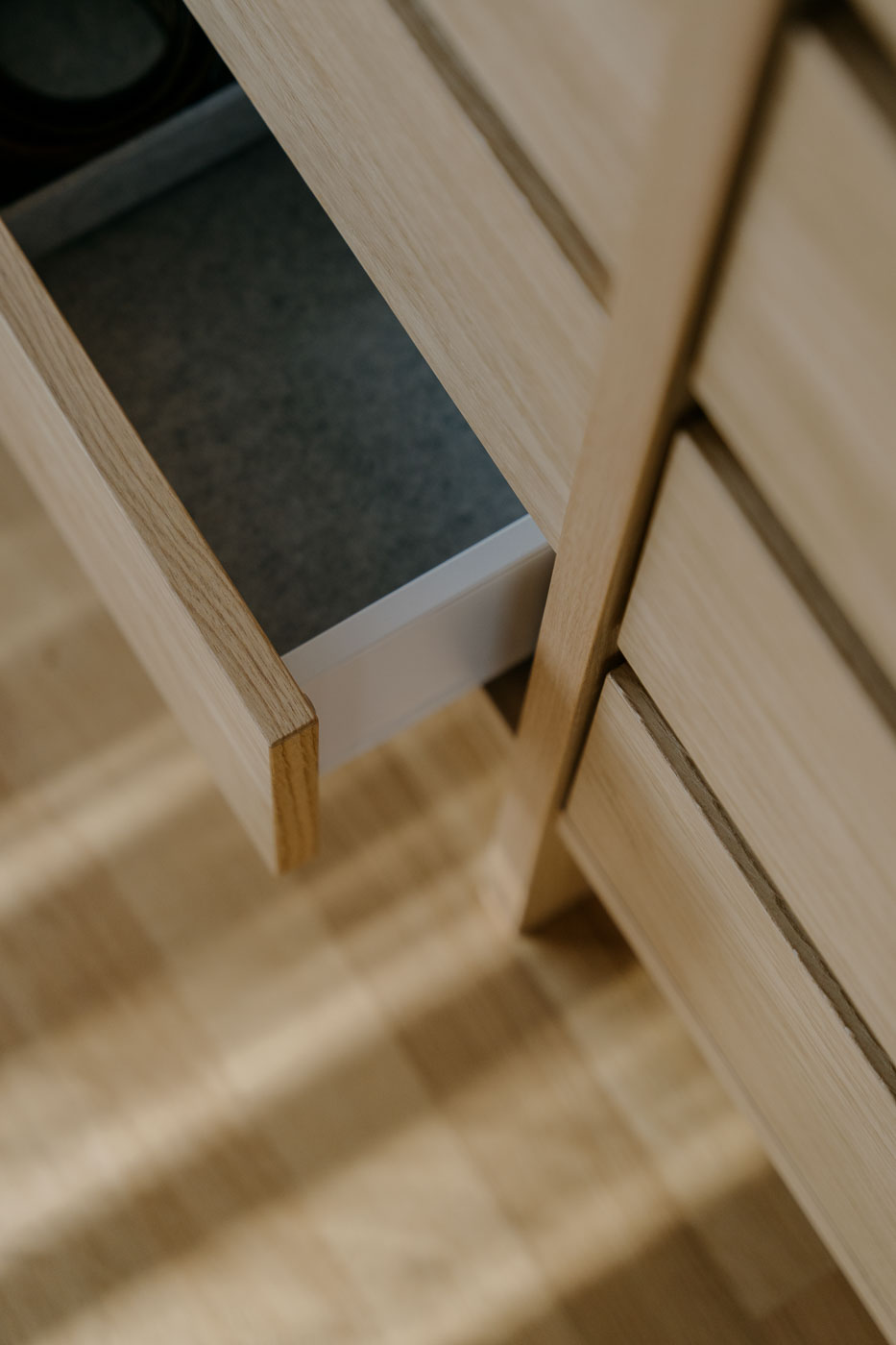 - Individueller Stauraum: Mit höhenverstellbaren Fachböden, Schubladen und Kleiderstangen passt sich der Schrank flexibel an die sich wechselnden Bedürfnisse an