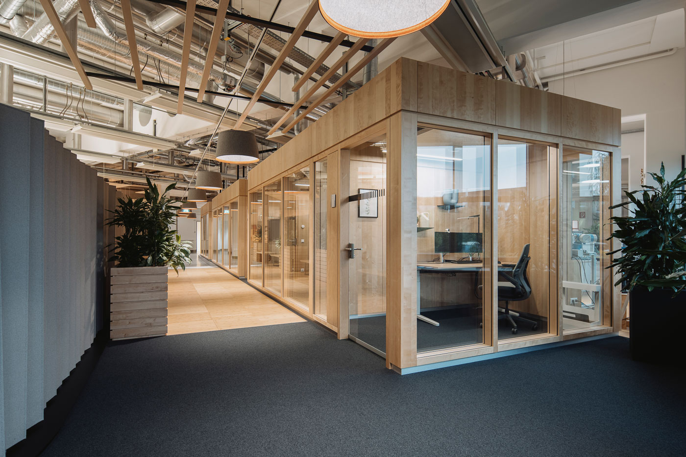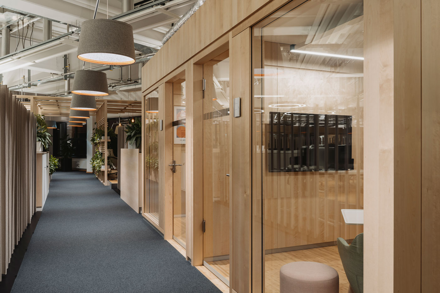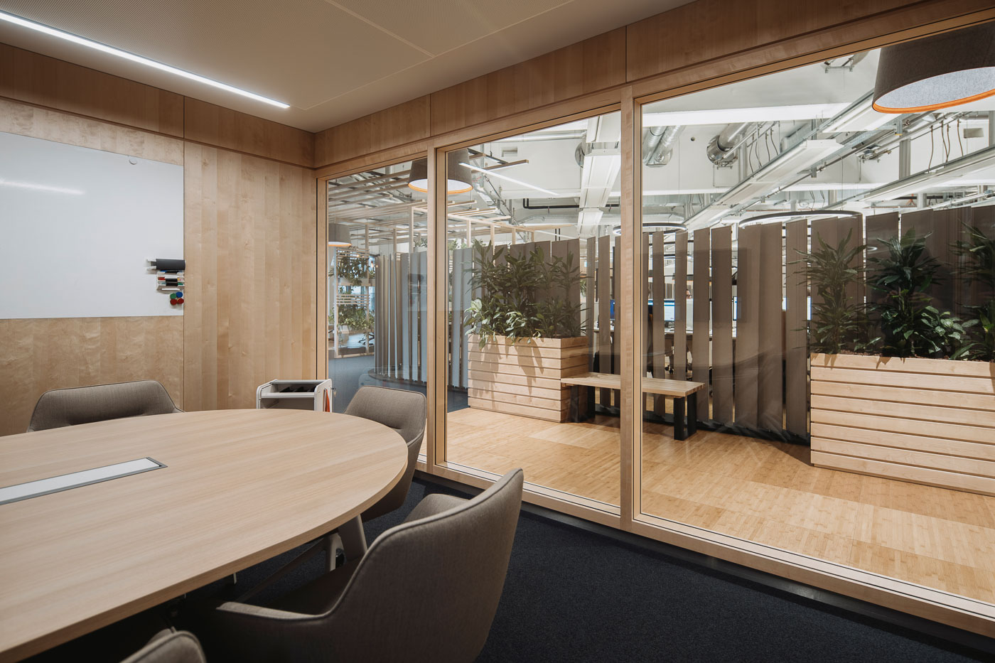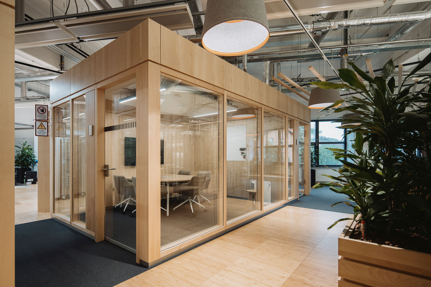 Wie lassen sich in einer offenen Arbeitsumgebung Sitzungsräume und kleine Büros realisieren ohne die Struktur des Gebäude zu verändern? In unserem Projekt mit Endress + Hauser Maulburg haben wir genau das umgesetzt.