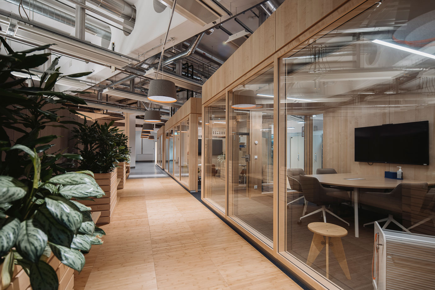 Büro-Trennwände mit integrierter Technik - Räume schaffen in der Industriehalle
